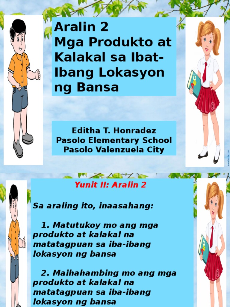 Aralin 2 Mga Produkto At Kalakal Sa Ibat Ibang Lokasyon Ng Bansa