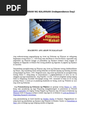 Isinasaad sa nasabing batas na ang petsang Hunyo 12 ay kinikilala bilang Araw ng Watawat at siya ring Araw ng Kalayaan. Hulyo 4 1898 C. Gawain 2 Gawain 1.