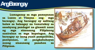 Kaibahan ng sistema ng kalakalan ng mga sinaunang Pilipino at sa panahon ng kolonyalismoEpekto ng mga pagbabago sa pamamahala ng mga Espanyol sa mga sinaunang Pilipino. Ang mekanismo na pinapahintulutan ang kalakalan ay tinatawag na pamilihan. Human translations with examples.