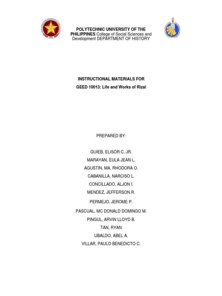 Geed 10013 Life And Works Of Rizal Final And Updated 92520 Pdf Philippines